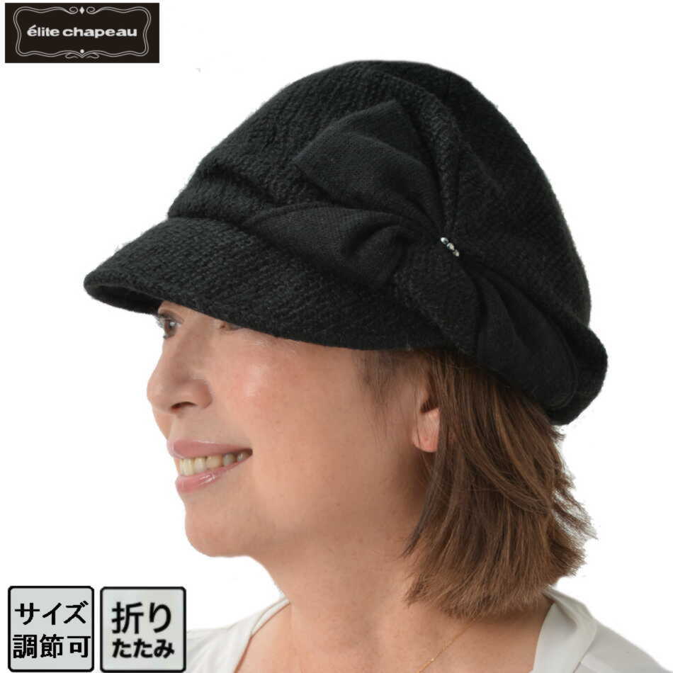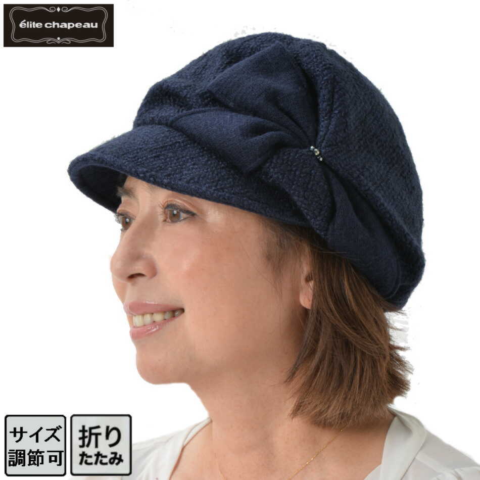 【送料無料、メール便対応】帽子 レディース 秋 秋冬 ミセス シニア ギフト プレゼント 母の日 キャスケット キャップ 折りたたみ サイズ調整 型くずれ防止 小顔効果 フリーサイズ ウォーキング 黒 紺 ピンク エリートシャポー