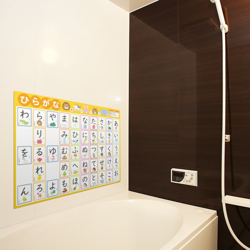 50音の並びを練習したり、ひらがなが使われた単語を覚えたり、お風呂の時間が楽しい学習時間になりますよ♪